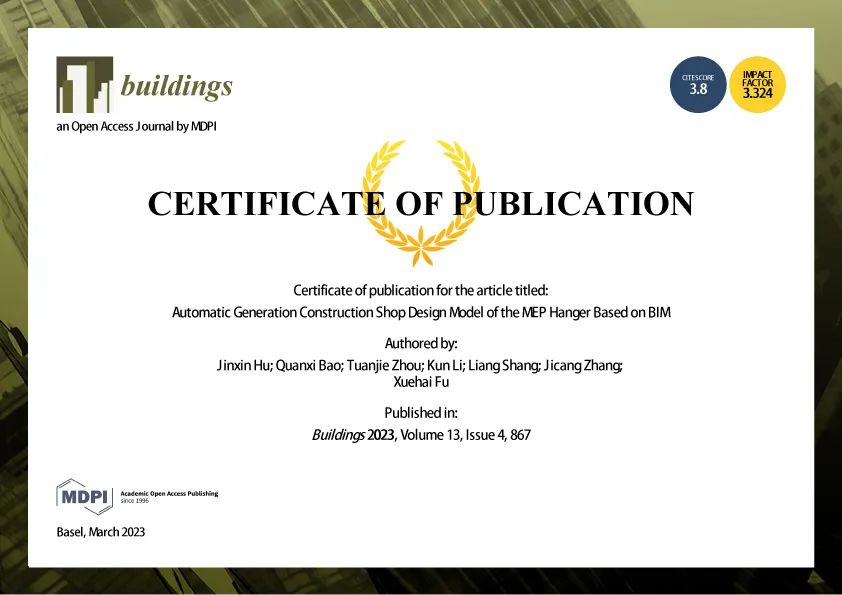華固三維自動化支吊架設計軟件研發成果登陸國際建筑期刊Buildings